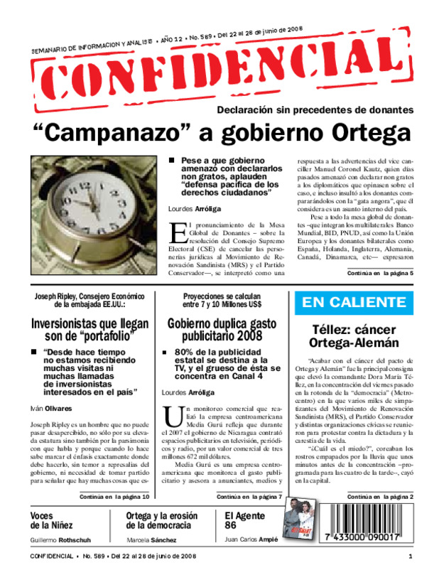 Ayuda presupuestaria UE queda congelada; esperan acciones y compromisos democráticos. FMI: se puede cubrir el déficit 2008 con reservas y préstamos BM y BID, si los aprueban el lunes.