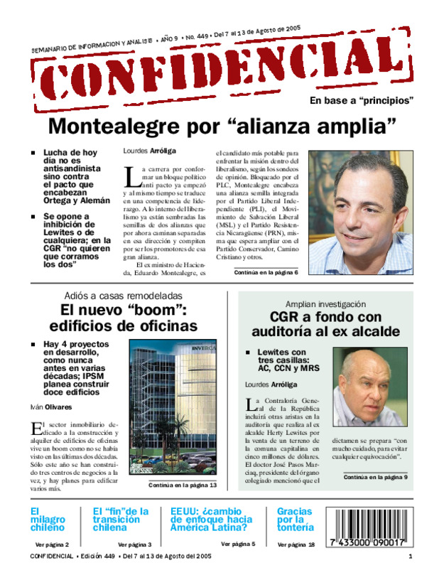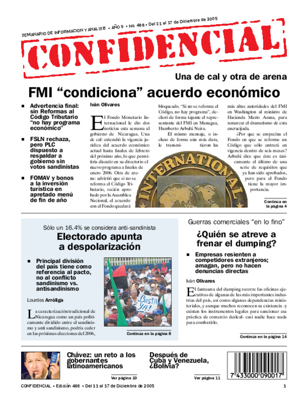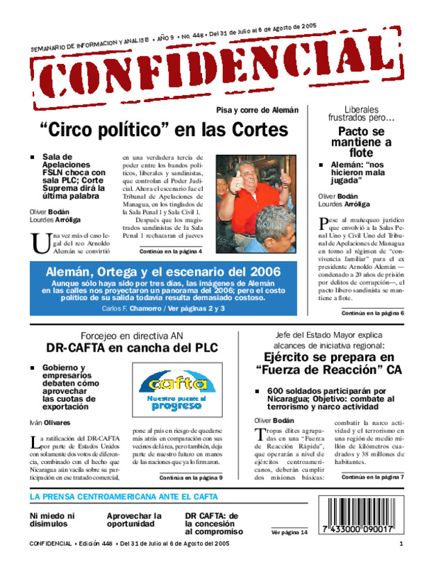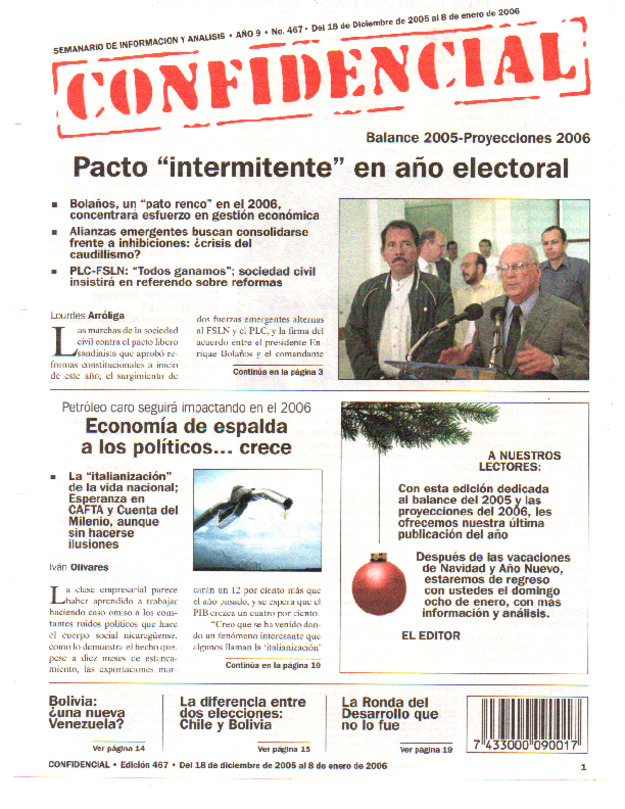 Bolaños, un «pato renco» en el 2006, concentrará esfuerzo en gestión económica. Alianzas emergentes buscan consolidarse frente a inhibiciones: ¿crisis del caudillismo?