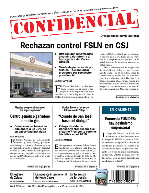 Ofrecen dos magistrados a cambio de reforma a ley orgánica del Poder Judicial. Montealegre no se da por aludido, PLC denuncia presiones por reelección presidencial.