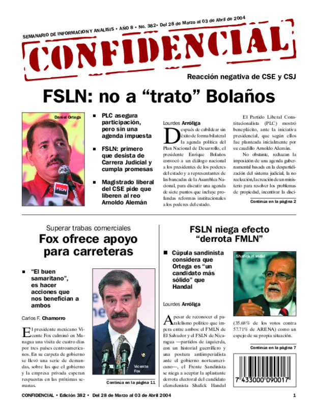 El Salvador y el paralelismo con NIcaragua: Tony Saca necesita ganar en primera vuelta para consolidar su mandato. Derrota de Shafick Handal sería oportunidad de renovación para FMLN.