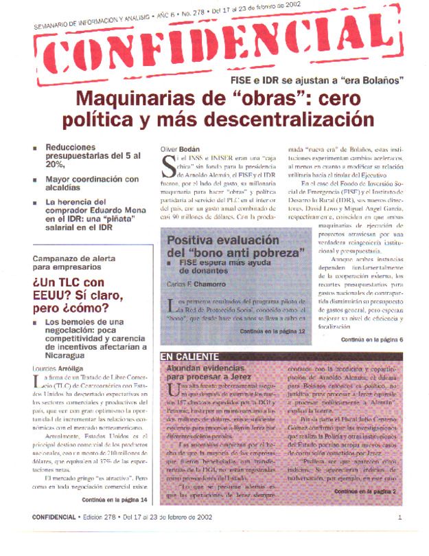 Extraoficialmente se habla de una investigación sobre otros ex funcionarios. Washington no comenta y Bolaños dice que no le han informado nada.