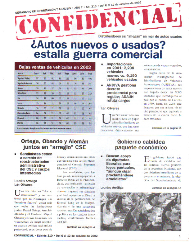 Distribuidores se «ahogan» en mar de autos usados. Importaciones en 2001: 2,208 vehículos nuevos vs. 9,190 vehículos usados.