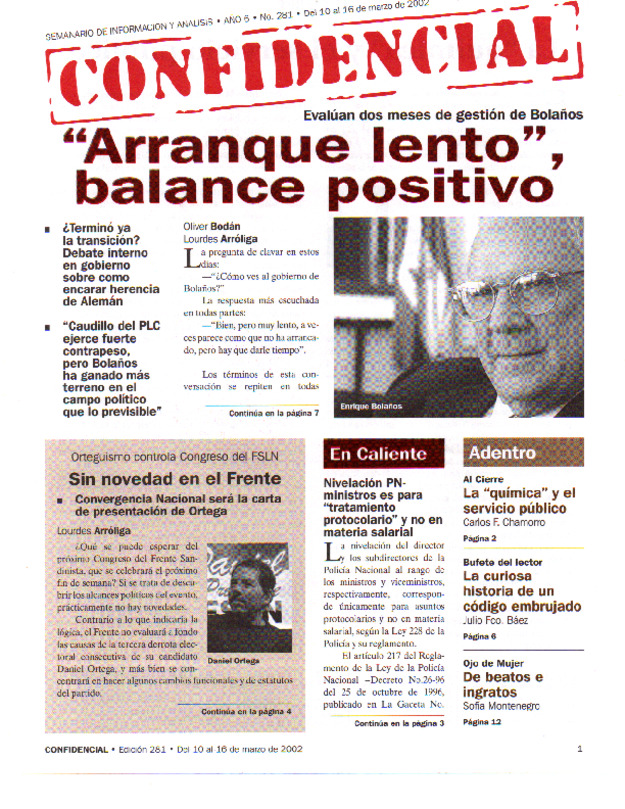 ¿Terminó ya la transición? Debate interno en gobierno sobre como encarar herencia de Alemán. «Caudillo del PLC ejerce fuerte contrapeso, pero Bolaños ha ganado más terreno en el campo político que lo previsible».