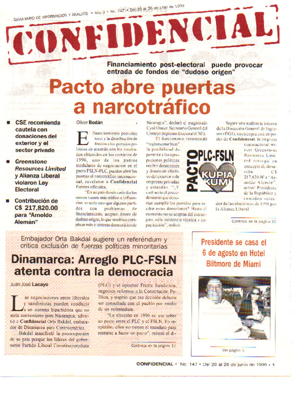 El pacto que negocian el Partido Liberal Constitucionalista (PLC) y el Frente Sandinista pone en peligro los compromisos adquiridos por el gobierno en Estocolmo.