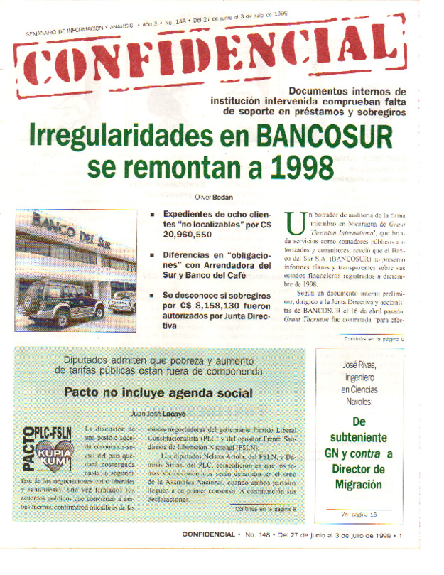 Documentos internos de institución intervenida comprueban falta de soporte en préstamos y sobregiros. Expedientes de ocho clientes «no localizables» por C$ 20,960,550.