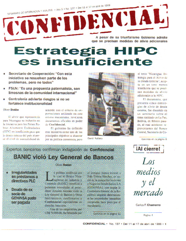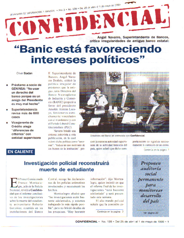 Anómala política bancaria beneficia al presidente Arnoldo Alemán y al PLC