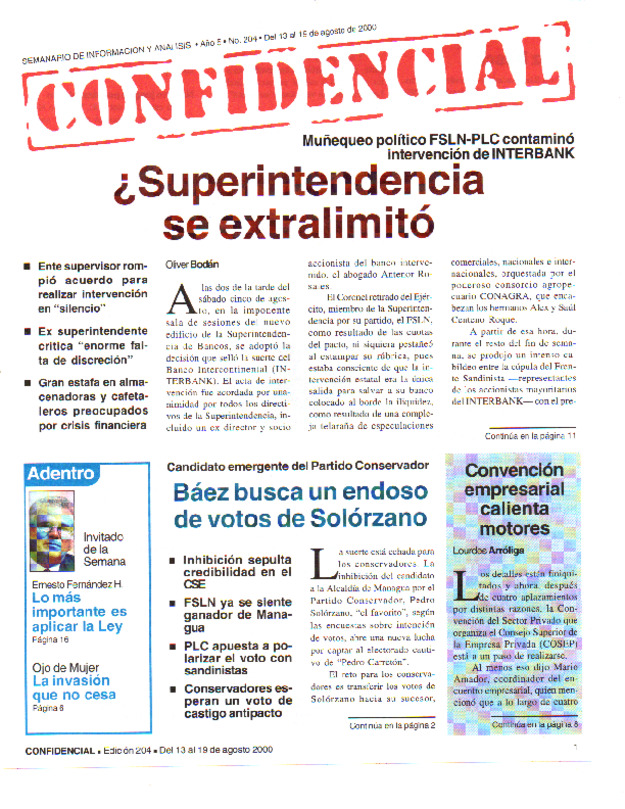 Muñequeo político FSLN-PLC contaminó intervención de INTERBANK. Ente supervisor rompió acuerdo para realizar intervención en «silencio».