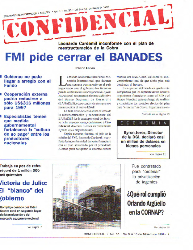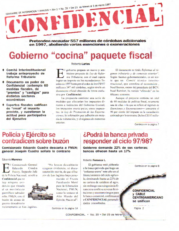 Pretenden recaudar 557 millones de córdobas adicionales en 1997, aboliendo varias exenciones o exoneraciones.