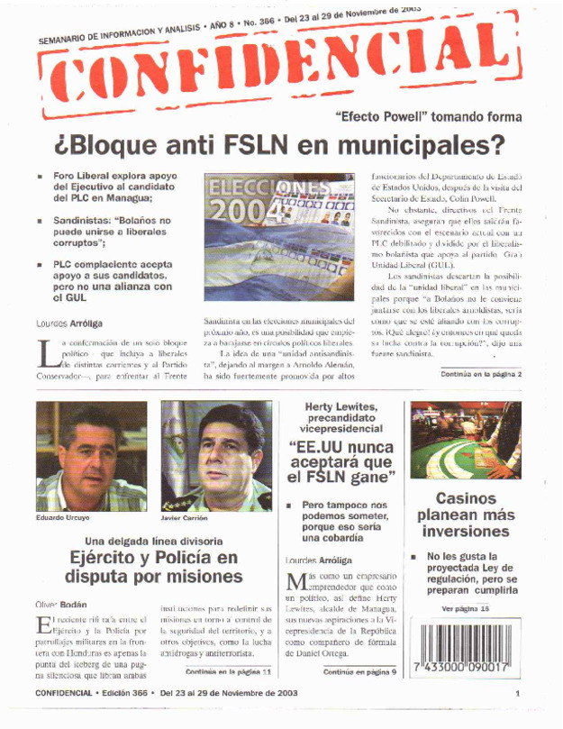 Martínez Cuenca propone estrategia electoral. Para ganar en el 2005 hay que «seleccionar al candidato idóneo que sume votos más allá del sandinismo».