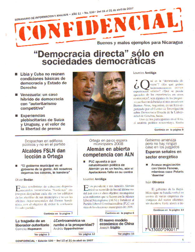 Buenos y malos ejemplos para Nicaragua. Venezuela: un caso híbrido de democracia con «autoritarismo competitivo».