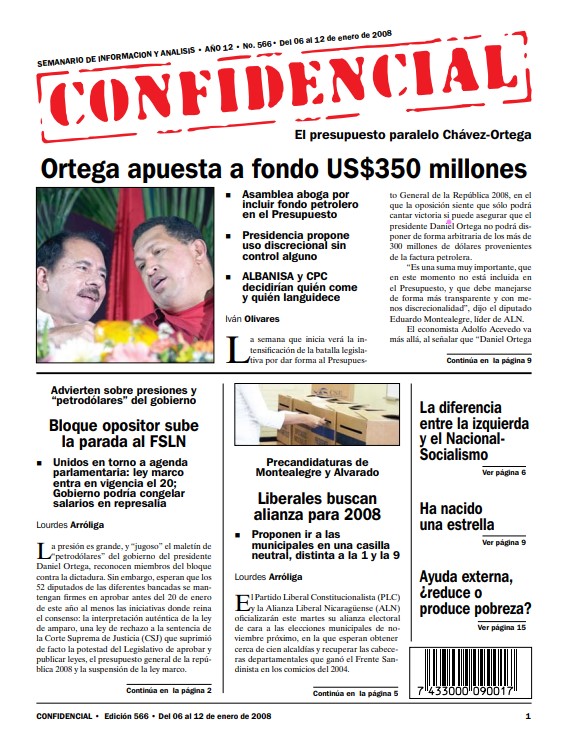 La semana que inicia verá la intensificación de la batalla legislativa por dar forma al Presupuesto General de la República 2008, en el que la oposición siente que sólo podrá cantar victoria si puede asegurar que el presidente Daniel Ortega no podrá disponer de forma arbitraria de los más de 300 millones de dólares provenientes…