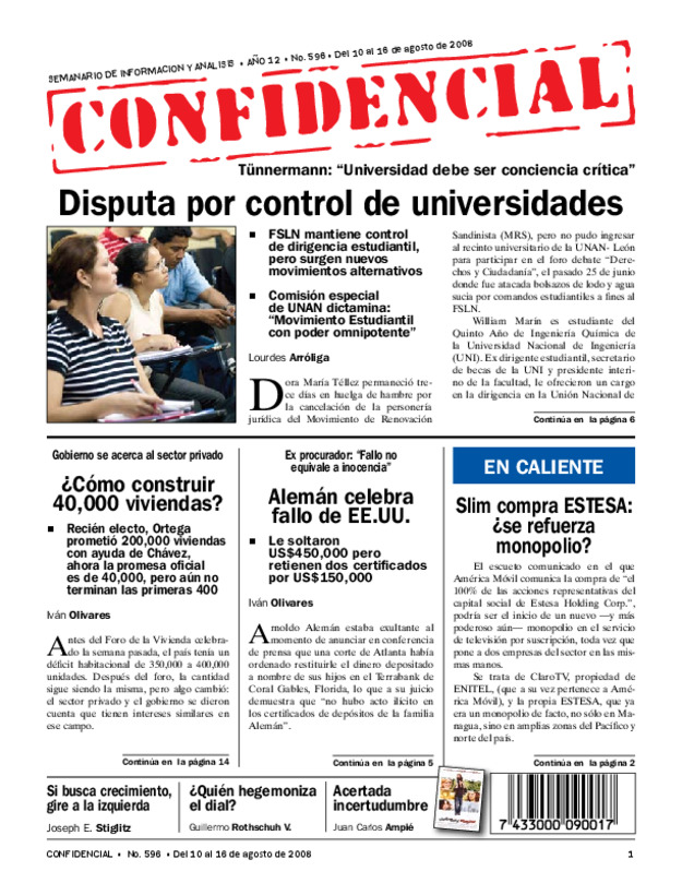 FSLN mantiene control de dirigencia estudiantil, pero surgen nuevos movimientos alternativos