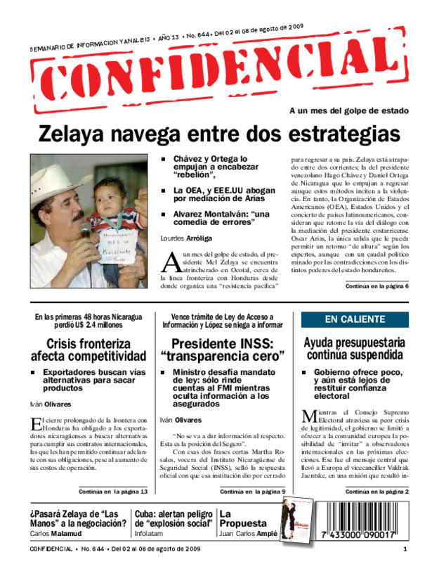 A un mes del golpe de estado: Chávez y Ortega lo empujan a encabezar «rebelión». La OEA, y EEE.UU abogan por mediación de Arias.