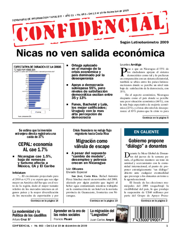 Ortega aplazado en el manejo de la crisis económica y país dominado por la desesperanza. Apoyo a democracia sobrepasa 55%, pero niveles de satisfacción democrática oscilan entre 35 y 13%.