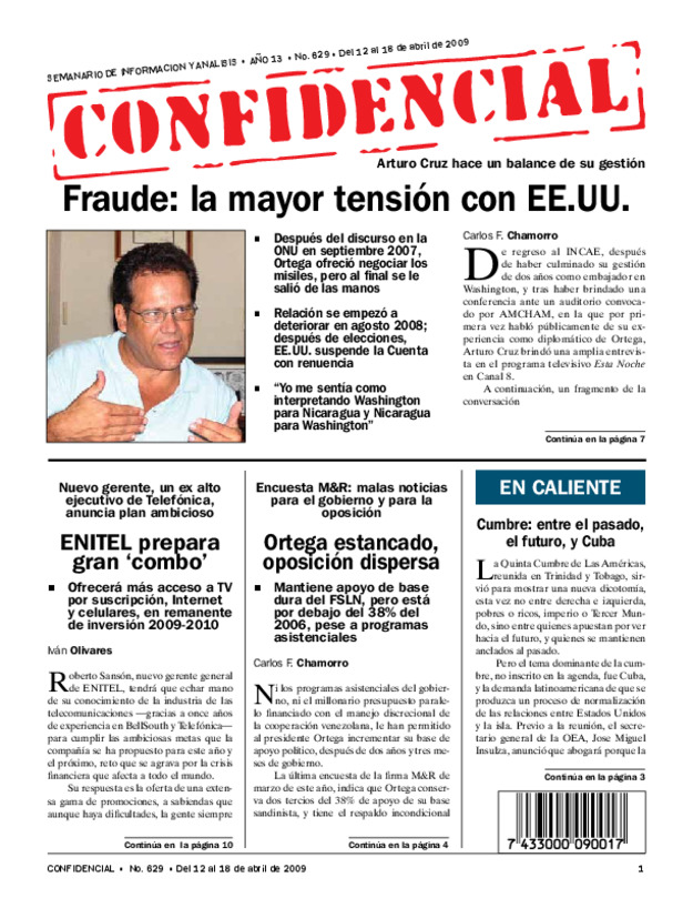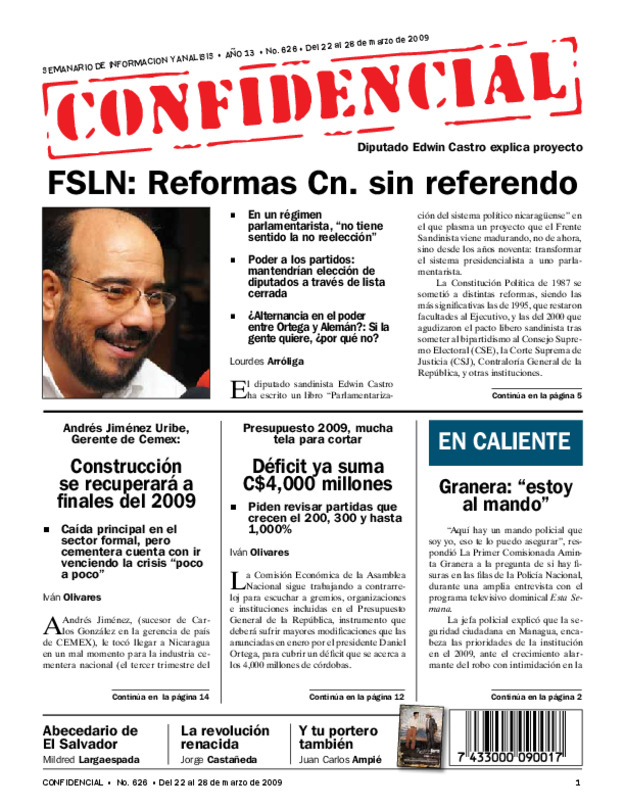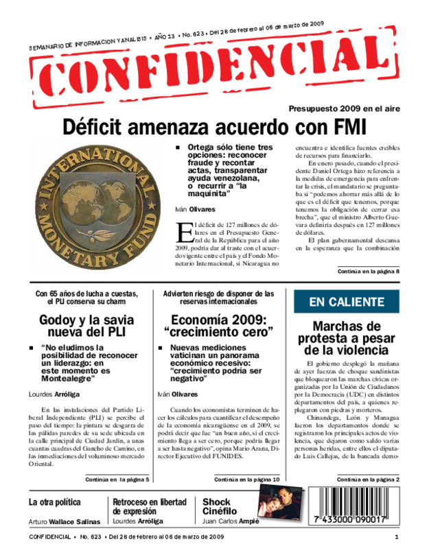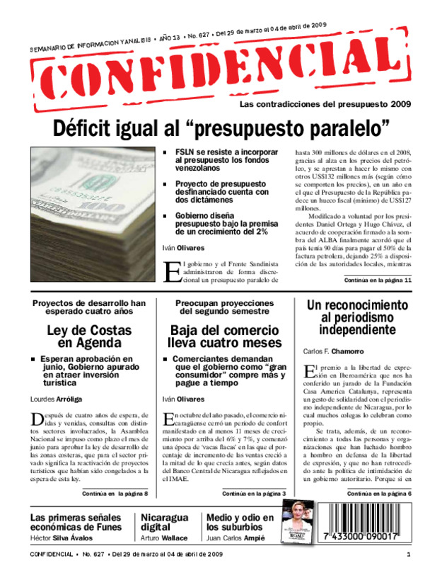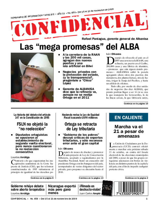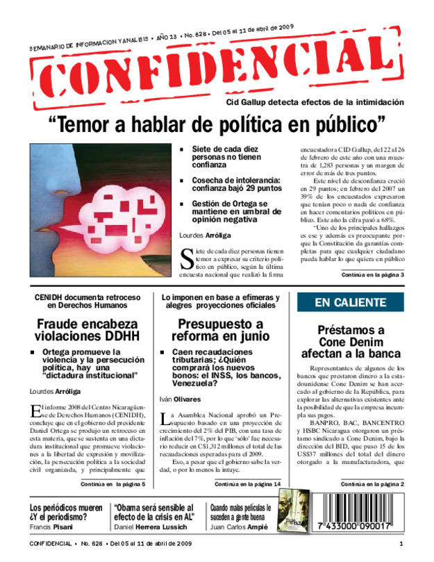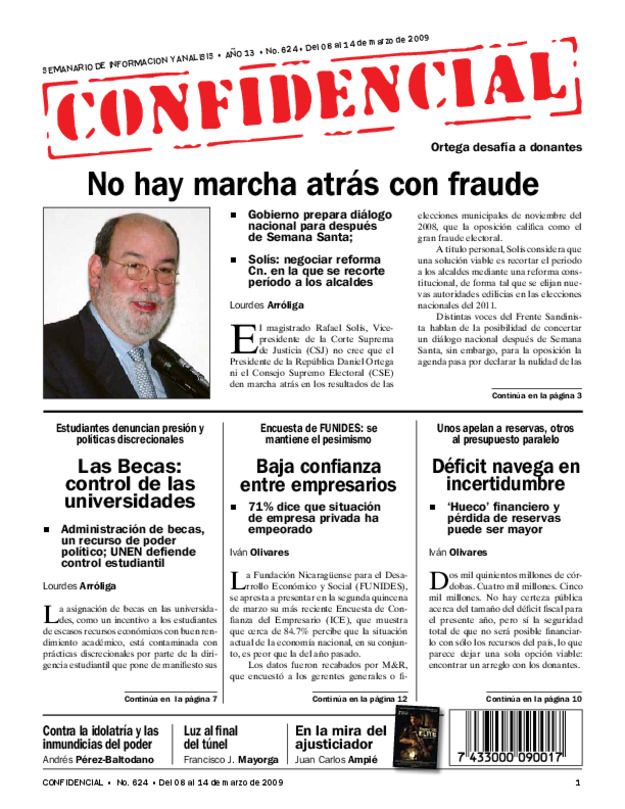 Ortega desafía a donantes. Gobierno prepara diálogo nacional para después de Semana Santa. Solís: negociar reforma Constitución en la que se recorte período a los alcaldes.