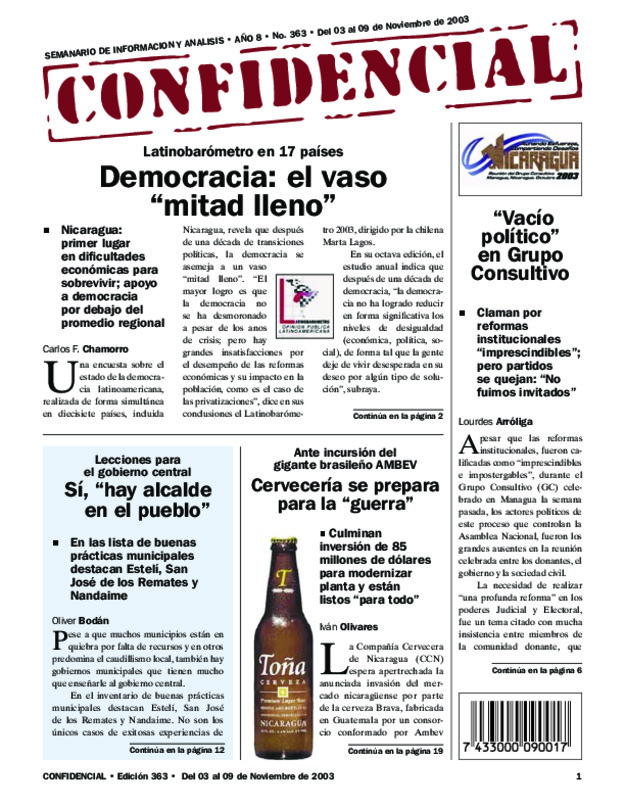 Nicaragua: primer lugar en dificultades económicas para sobrevivir; apoyo a democracia por debajo del promedio regional