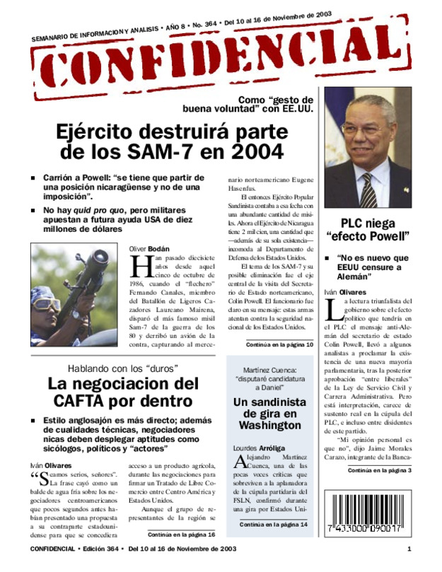 Como «gesto de buena voluntad» con EE.UU. Carrión a Powell: «se tiene que partir de una posición nicaragüense y no de una imposición».