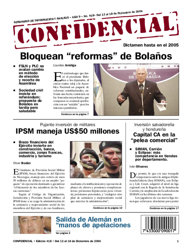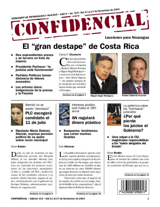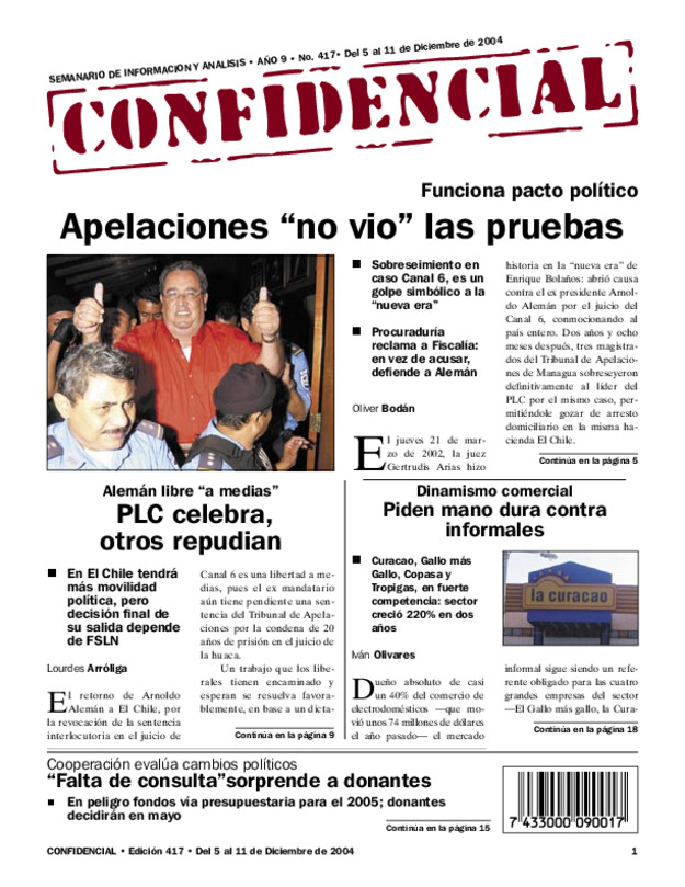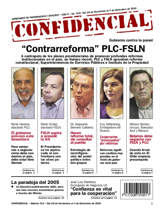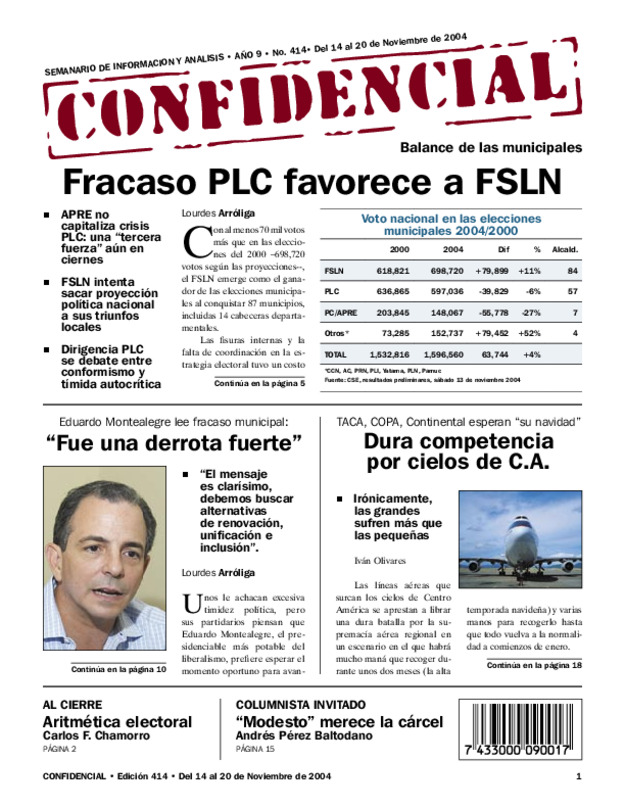 Alemán rehén y Bolaños enjuiciado por delitos electorales. Al oxigenar al PLC, FSLN divide bloque antisandinista. Municipales no van en 2004; «regalan» dos años a los alcaldes.