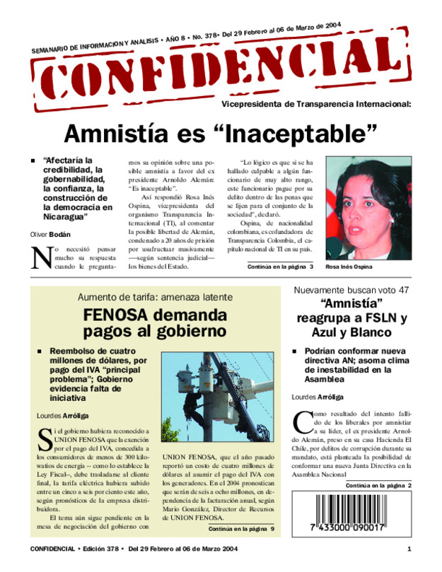 Vicepresidenta de Transparencia Internacional: «Afectaría la credibilidad, la gobernabilidad, la confianza, la construcción de la democracia en Nicaragua»