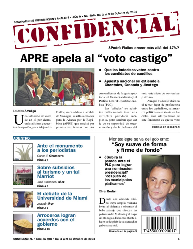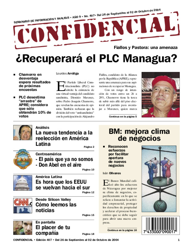 Chamorro en desventaja espera resultados de próximas encuestas PLC desestima «arrastre» de APRE; considera que sólo obtendrán 10% de votos