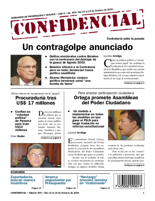 Delitos electorales contra Bolaños son la contracara del destape de la guaca de Agosto 2002. Bolaños informó a la Contraloría pero no todo; denuncian trama política caudillista.