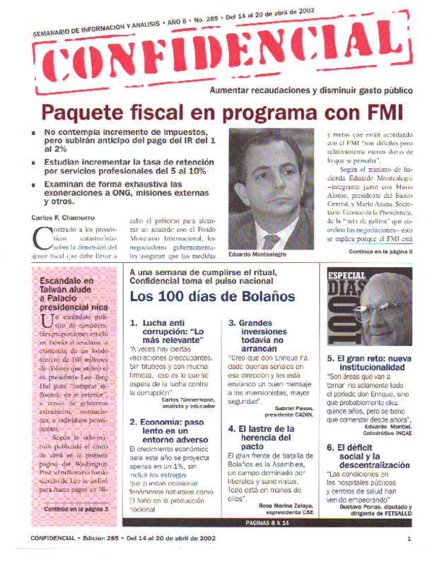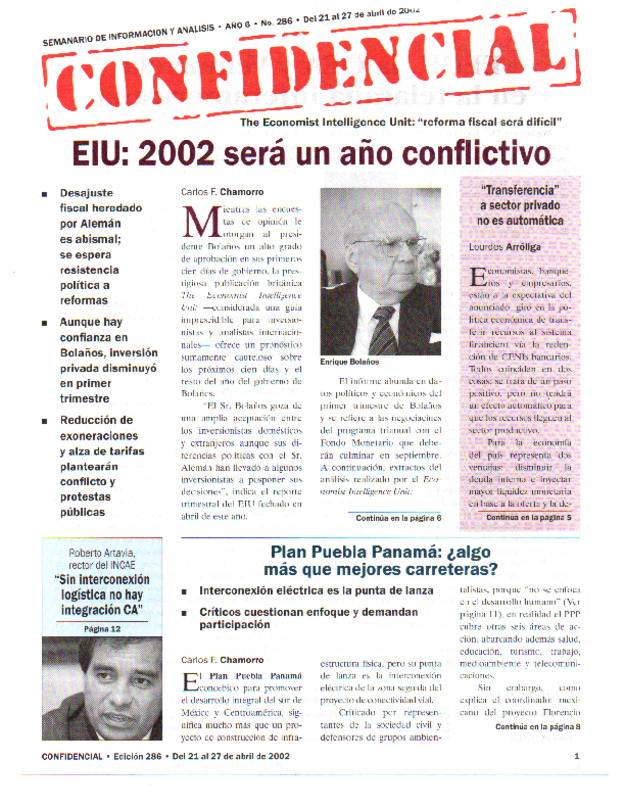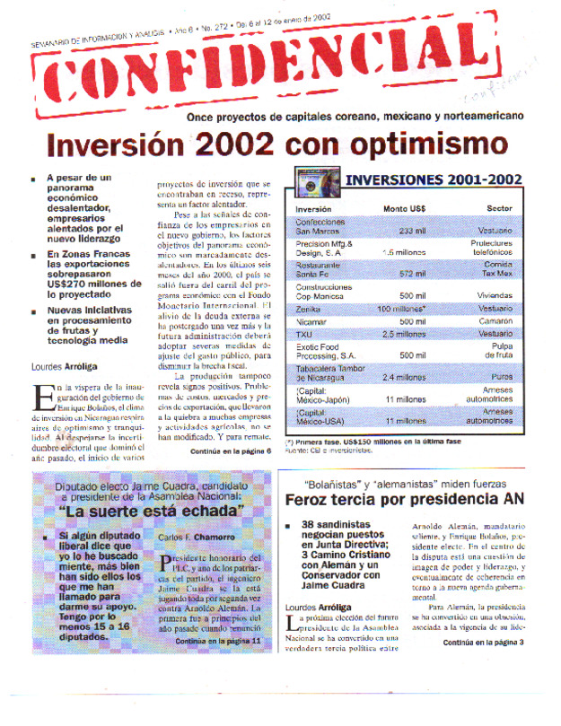 Desajuste fiscal heredado por Alemán es abismal; se espera resistencia política a reformas. Aunque hay confianza en Bolaños, inversión privada disminuyó en primer trimestre.