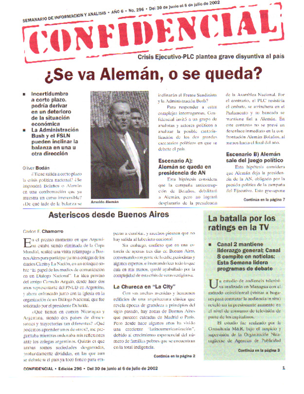Incertidumbre a corto plazo, podría derivar en un deterioro de la situación económica. La Administración Bush y el FSLN pueden inclinar la balanza en una u otra dirección.