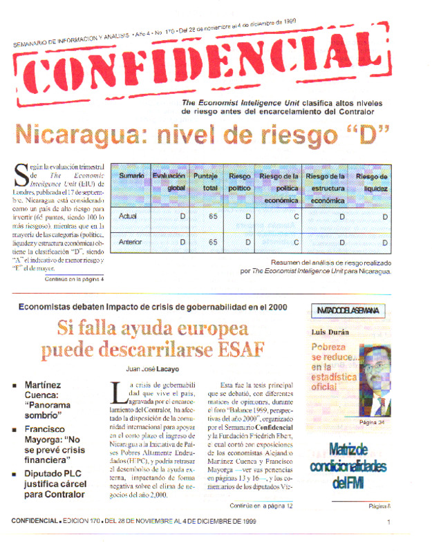 The Economist lnteligence Unit clasifica altos niveles de riesgo antes del encarcelamiento del Contralor