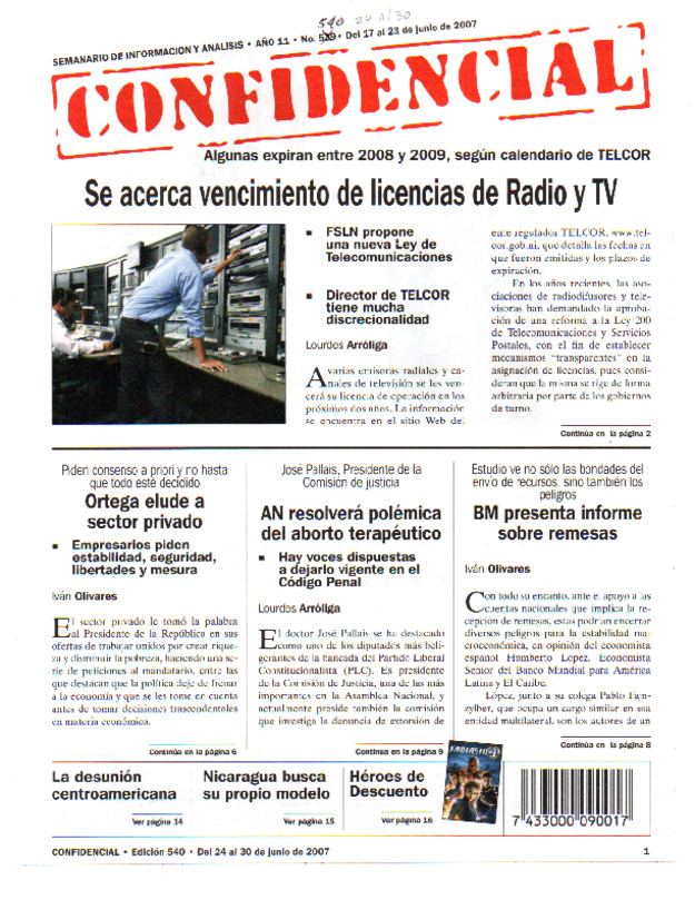 Algunas expiran entre 2008 y 2009, según calendario de TELCOR. FSLN propone una nueva ley de Telecomunicaciones.
