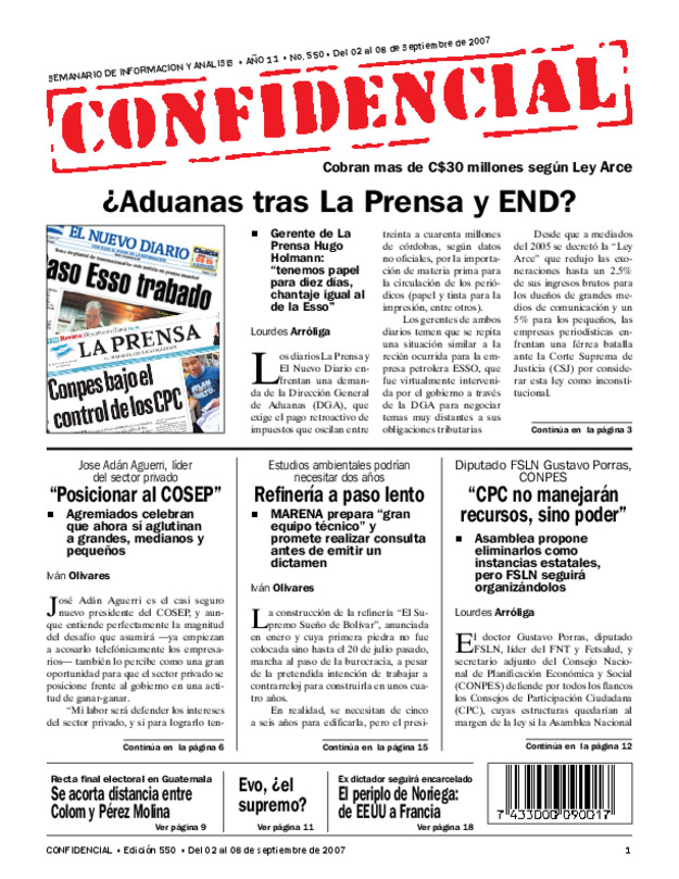Cobran mas de C$30 millones según Ley Arce. Gerente de La Prensa Hugo Holmann: “tenemos papel para diez días, chantaje igual al de la Esso”