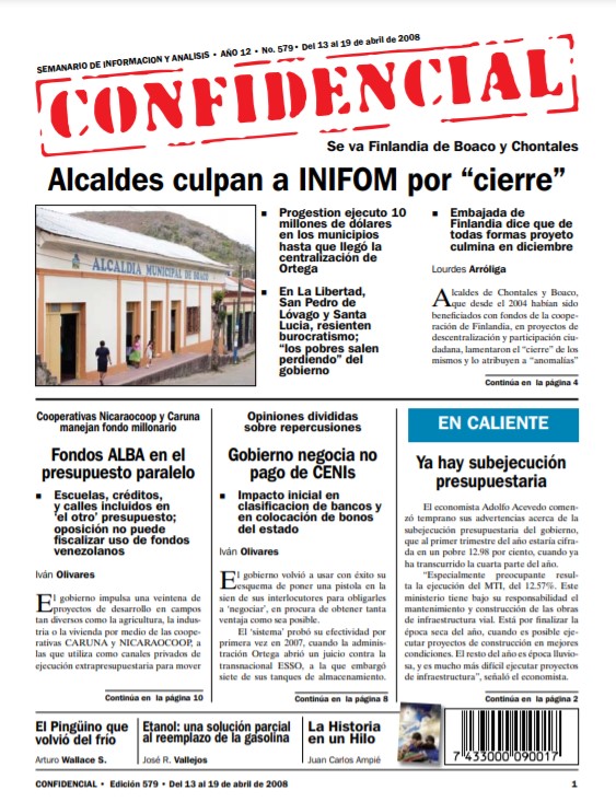 Alcaldes de Chontales y Boaco, que desde el 2004 habían sido beneficiados con fondos de la cooperación de Finlandia, en proyectos de descentralización y participación ciudadana, lamentaron el “cierre” de los mismos y lo atribuyen a “anomalías” por parte del Instituto Nicaragüense de Fomento Municipal (INIFOM), entidad ejecutora, que desde que asumió el gobierno del…